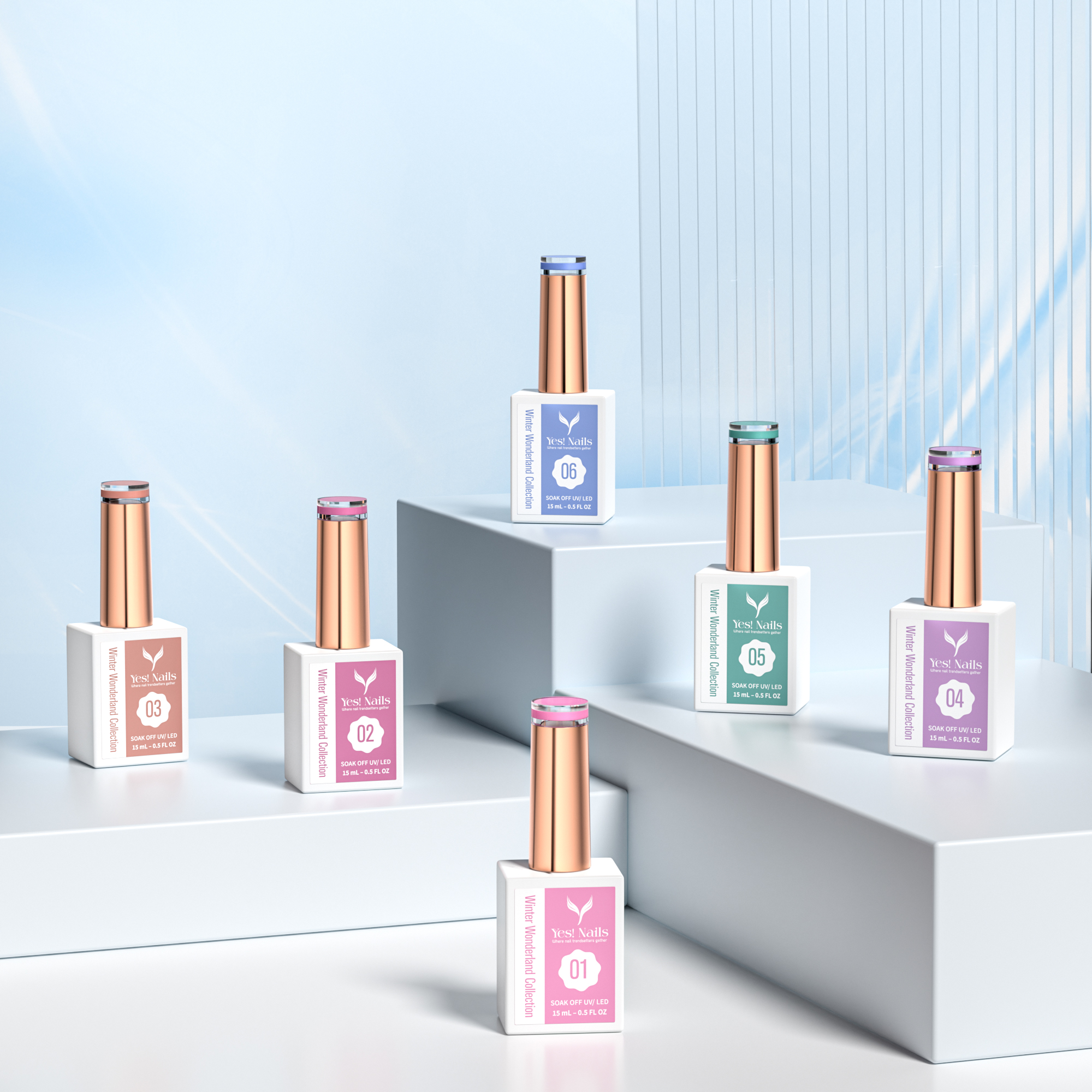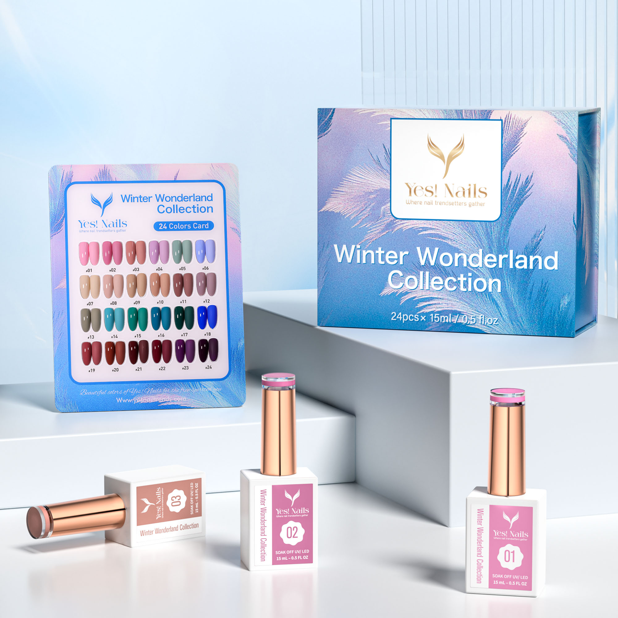 - Each shade in this collection reflects the signature beauty of winter — soft pastels, frosted tones, and deep cozy hues — thoughtfully designed by Yes! Nails to harmonize with the winter atmosphere and holiday celebrations.